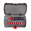 Deluje v smeri urinega kazalca in obratno. Izvijač je narejen iz visokokakovostnega CrV jekla, nastavki pa so narejeni iz S2 kovine. PH1,2,3,PL 5, 6,7,8,10,12,14. Set je shranjen v plastični posodi.