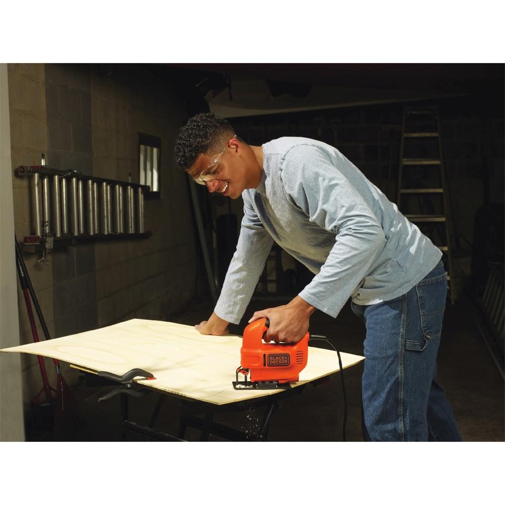 Vbodna žaga ima ergonomsko obliko za udobje. Ima vidno rezilo za natančno rezanje. Puhalnik prahu ohranja čisto linijo reza. Žaga ima nizke vibracije. Pozitivni poševni zadrževalnik pri 0 in 45 stopinj. Stikalo za zaklepanje za večje udobje med dolgotrajnim rezanjem. Lastnosti: - Moč: 400 W - Napetost: 230 V - Udarci: 3000 /min - Globina reza - Les: 65 mm - Globina reza - Jeklo: 5 mm - Globina reza - Aluminij: 10 mm - Dolžina hoda: 19 mm - Rezila: 1 Vsebuje: - 400 W kompaktna vbodna žaga - 1 rezilo za les