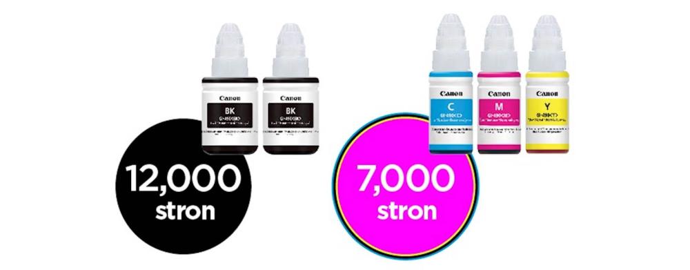 | Priložena črnila dodatno: | Bk za 12.000 strani in CMY za 7.000 strani (uporablja črnila GI-490 Bk/C/M/Y) |