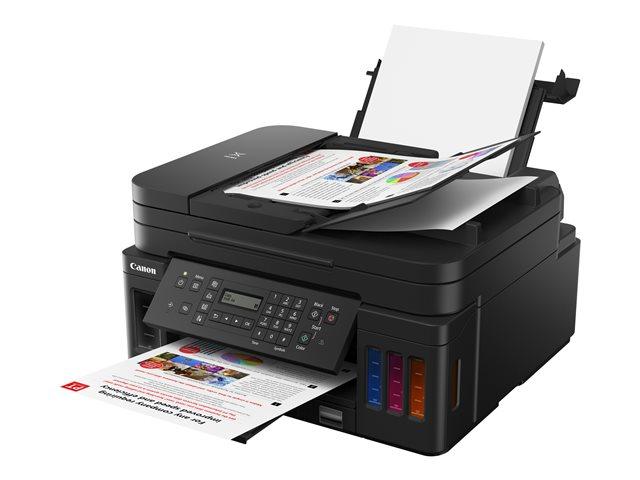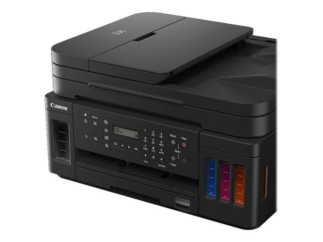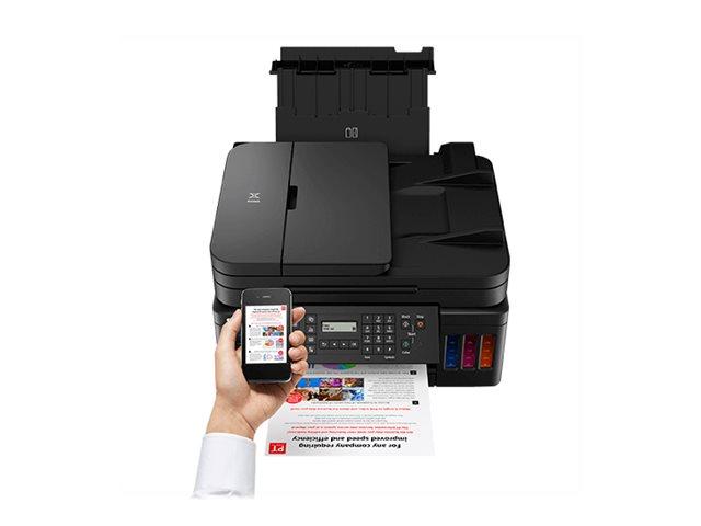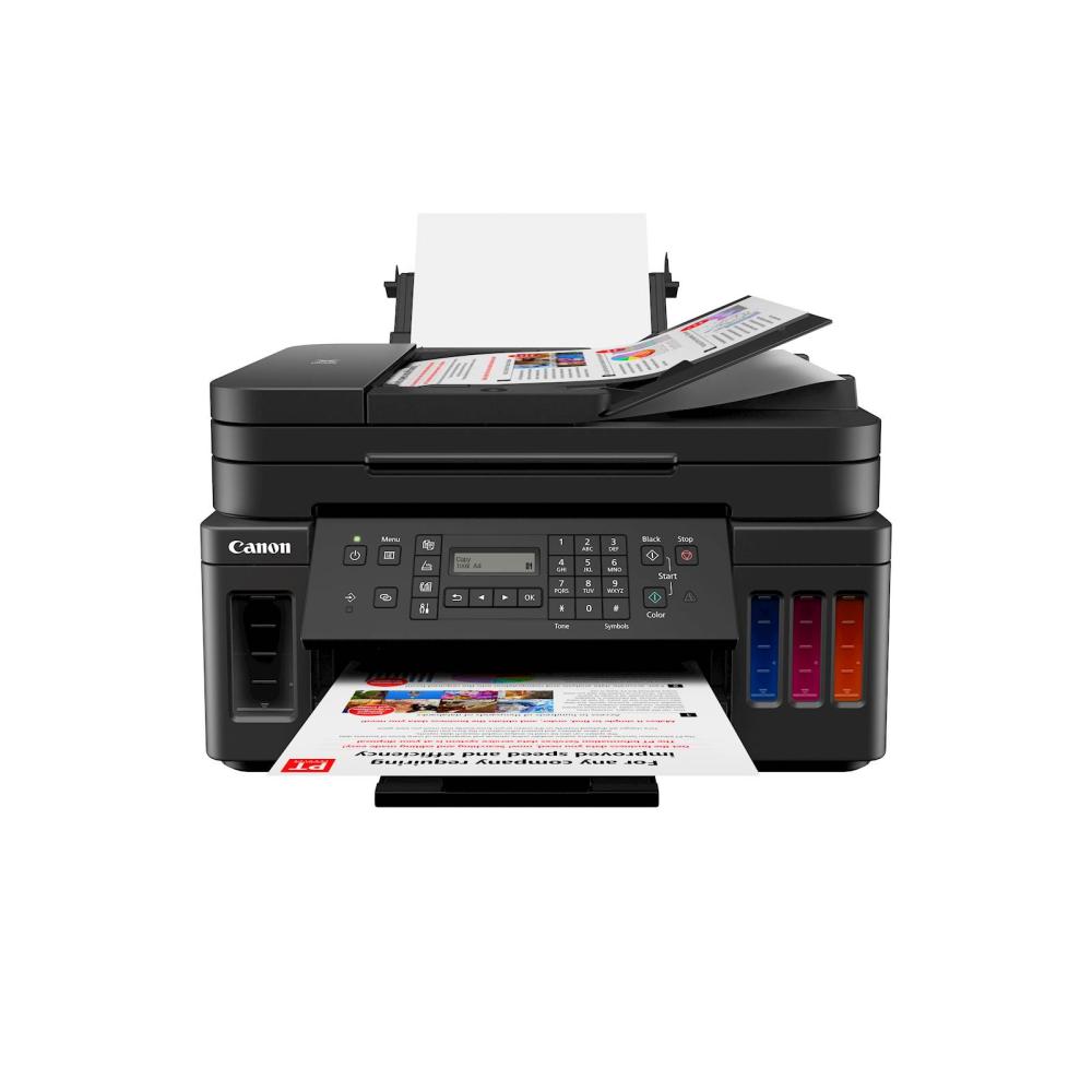 Canon PIXMA G7040 Tiskalnik 4-v-1 s črnilnimi vložki z možnostjo ponovnega polnjenja in ethernetno povezavo. Odlikuje ga kakovost, visok izkoristek in nizki stroški na stran. Tiskanje, skeniranje, kopiranje in faksiranje, združeni v enem samem elegantnem modelu s povečano učinkovitostjo, kapaciteto 350 listov navadnega papirja, samodejnim obojestranskim tiskanjem in samodejnim podajalnikom dokumentov za 35 listov. Za visoko kakovost in nizke stroške natisnite do 18.000 strani s 3 stekleničkami črnila ali 7700 strani s kompletom barvnih črnil. Podprti operacijski sistemi: Windows in Mac OS!!