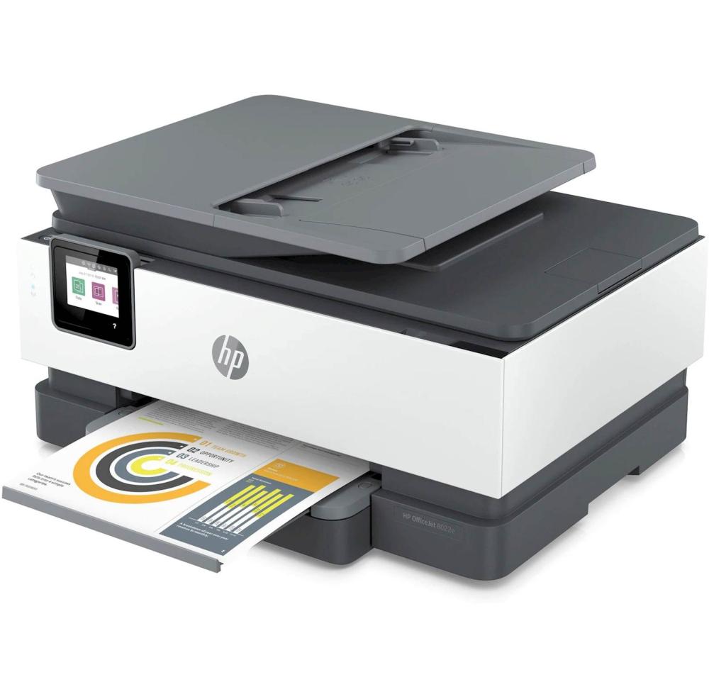 HP Officejet Pro 8022e All-in-One naprava je primerna za domačo uporabo ali manjša podjetja. Z barvnim zaslonom na dotik vam omogoča lažji dostop do aplikacij. Naprava ima 225 listni predal ter 35 listni avtomatski podajalnik dokumentov ter omogoča obojestransko tiskanje, kar vam poenostavlja opravila tiskanja v pisarni. Z uporabo storitve HP Instant Ink, lahko prihranite do 70% za črnila.