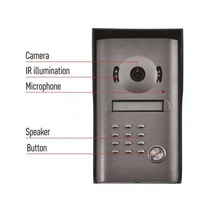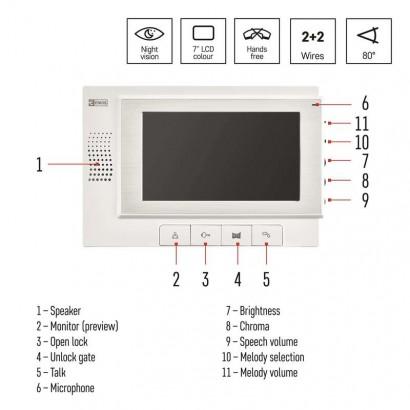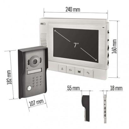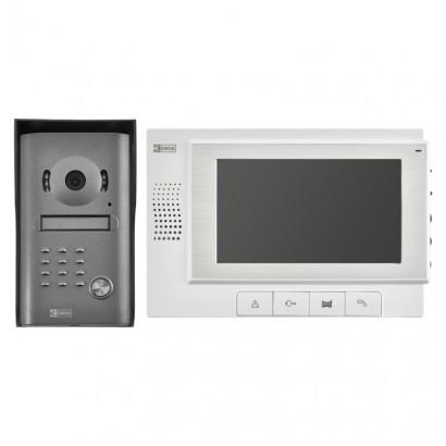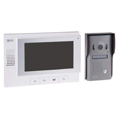 Set videodomofona RL-03M s 7\" barvnim LCD zaslonom. Naprava omogoča upravljati električno ključavnico (napetostni izhod) in električni pomik vrat (brezpotencialni rele).aplikacija za daljinsko upravljanje: brez aplikacije