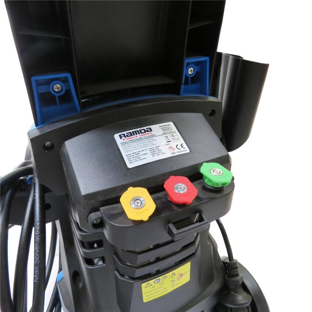 Visokotlačni čistilec/pralec RAMDA na hladno vodo v kompaktnem ohišju z velikimi kolesi za transport, z vgrajenim rezervoarjem za šampon, aluminijasta črpalka. Osnovna oprema: PVC pištola s plastičnim ročajem, visokotlačna cev, dolžine 5m, igla za čiščenje šobe.