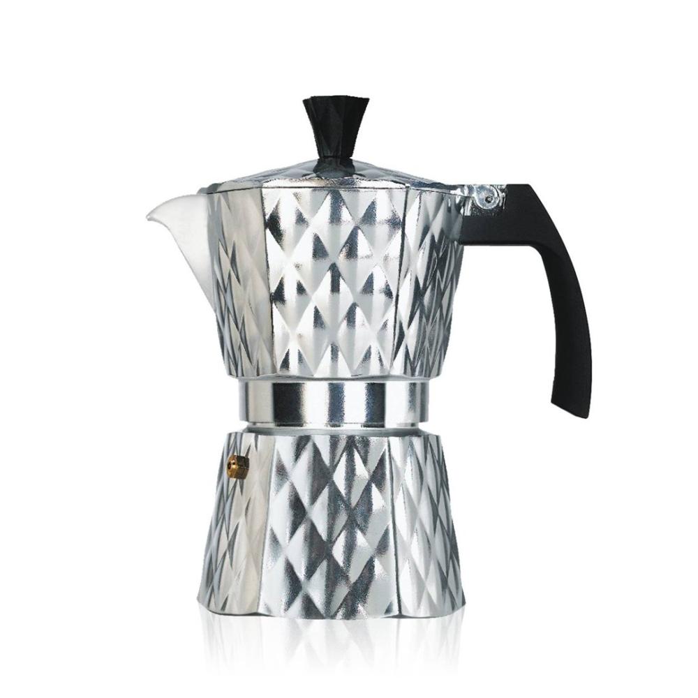 Prava aluminijasta kafetiera La Peppina je narejena po italijanskem vzoru, z dvojnim silikonskim tesnilom, za pripravo treh skodelic kave. Ročaj in gumb sta izdelana iz odporne termopastike, ki se ne segreva.Primerna je za kuhanje na kuhalnih površinah plin, elektrika in steklokeramika. Kafetiero pomijte ročno.