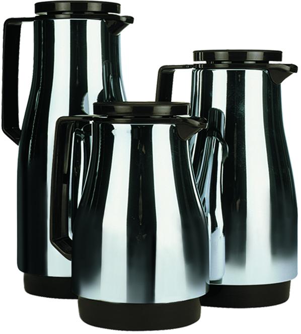 Eleganten vakuumski termo vrč z ohišjem iz kromiranega jekla omogoča odlično toplotno izolacijo. Notranjost vrča je iz dvojne stene z vakumsko izolirano posodo iz nerjavečega jekla s stekleno prevleko. Pokrov na navoj, ročaj in spodnji podstavek so narejeni iz umetne mase v rjavi barvi.