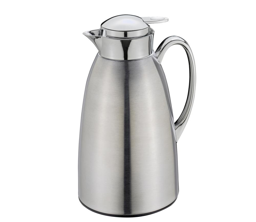 Vakuumski termo vrč VENEZIA s prostornino 1L blagovne znamke Cilio je primeren tako za tople kot hladne napitke. Tako lahko uživate v svoji najljubši pijači ob vedno pravi temperaturi. Zunanjost v kombinaciji svetlečega in matiranega nerjavečega jekla daje vrču posebno eleganco. Vložek iz kaljenega stekla je robusten in omogoča dobro temperaturno izolativnost - čaj ali kava ohranjata toploto do 12 ur, domača limonada pa ostaja prijetno ohlajena tudi do 24 ur. S priročnim gumbom za vlivanje boste vaš napitek enostavno postregli kar z eno roko.