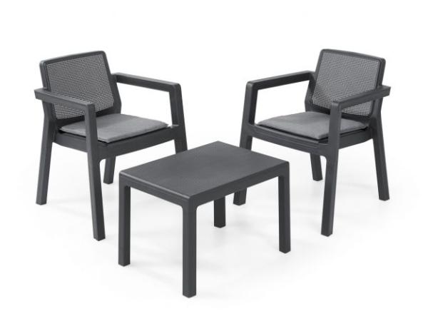 Balkonska garnitura Keter Emily -dimenzije artikla stol: 68 x 64 x 75cm, miza: 47 x 65 x 42cm -dimenzije pakiranja 70 x 54 x 70cm -teža 11,1kg -komplet vsebuje dva naslanjača in klubsko mizico -trpežna smolasta konstrukcija, ki jo je enostavno vzdrževati -premišljena zasnova in enostavno sestavljanje brez orodja -5 minutna montaža -enostavno čiščenje -izdelek je odporen na vremenske vplive in UV žarke.