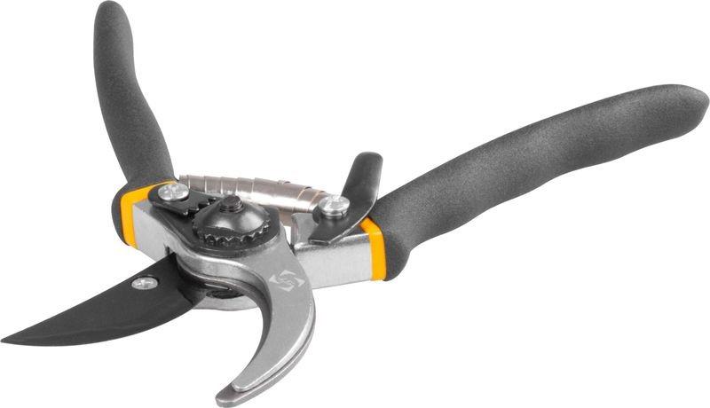 Kovane vrtnarske škarje z vzmetjo in varovalnim zatičem.
