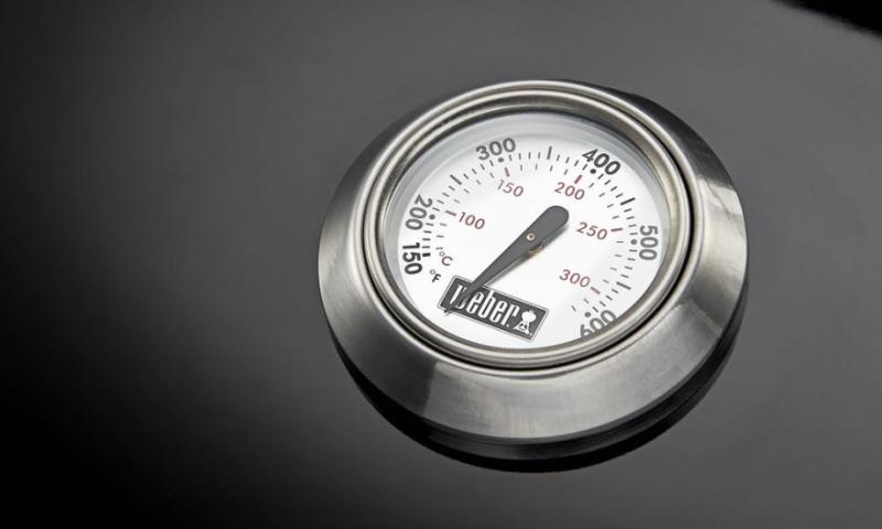 nogami s kolesi za lažji transport in vgrajenim termometrom v pokrovu. Rešetka za peko je izdelana iz galvaniziranega jekla, pokrov in skleda pa iz porcelanasto emajliranega jekla,