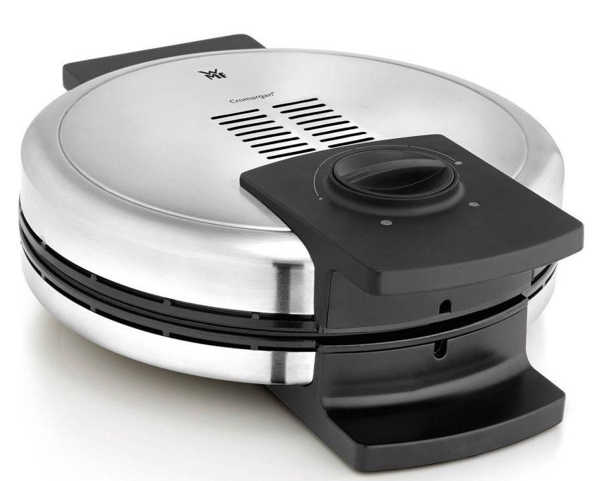 Pekač vafljev WMF Lono se ponaša z neoprijemljivima aluminjastima ploščama in vročini oddpornim ohišjem iz Cromargan jekla z integriranim ventilatorjem. Poleg tega lahko nastavite stopnjo zapečenosti vafljev po lastnem okusu. LED indikator vas opozori, kdaj lahko vafelj vzamete iz pekača. Pekač pa po uporabi lahko shranite hitro in preprosto v navpični poziciji, saj omogoča navijanje kabla.