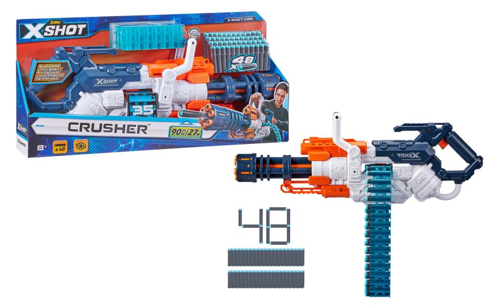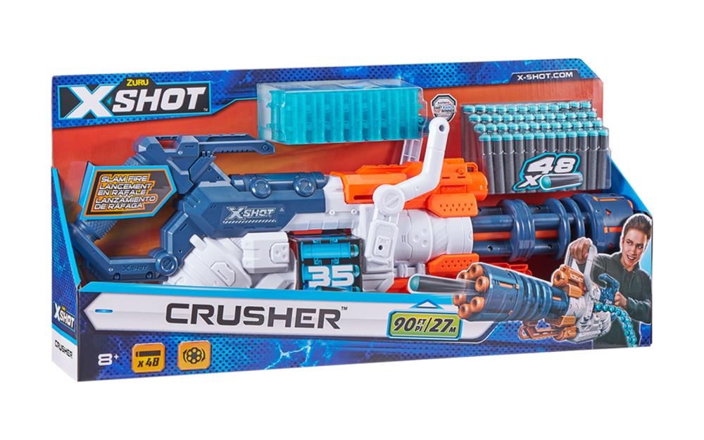 PUŠKA CRUSHER, EXCEL, X-SHOT, ZURU! Pripravi se na adrenalinske strelske bitke s puško Crusher iz serije X-Shot Excel! Ta impresivna puška v kombinaciji bele, modre in oranžne barve izgleda in deluje kot prava mini-gun, kar pomeni neskončno akcijo in zabavo! MOČNO OROŽJE ZA EPIC BOJE: S 35-strelskim nabojnikom in preprostim napenjalnim mehanizmom boš izstrelke sprožil z neverjetno hitrostjo, kar ti bo prineslo prednost v vsaki bitki. Crusher je zasnovan za dolge in napete dvoboje, kjer šteje hitrost in natančnost! NATANČEN STREL DO 27 METROV! Z dometom do 27 metrov boš obvladoval celotno bojišče in z lahkoto zadel tarčo. Še bolje – puška ne potrebuje baterij, kar omogoča neprekinjeno streljanje in maksimalno zabavo! VSEBINA KOMPLETA: puška Crusher, X-Shot Excel, 48 mehkih izstrelkov. Set Puška Crusher, Excel, X-Shot, Zuru je popolna izbira za vse ljubitelje strelskih bitk, ki želijo izpopolniti svoje spretnosti in doživeti nepozabno akcijo! Priporočeno za otroke od 8. leta dalje.