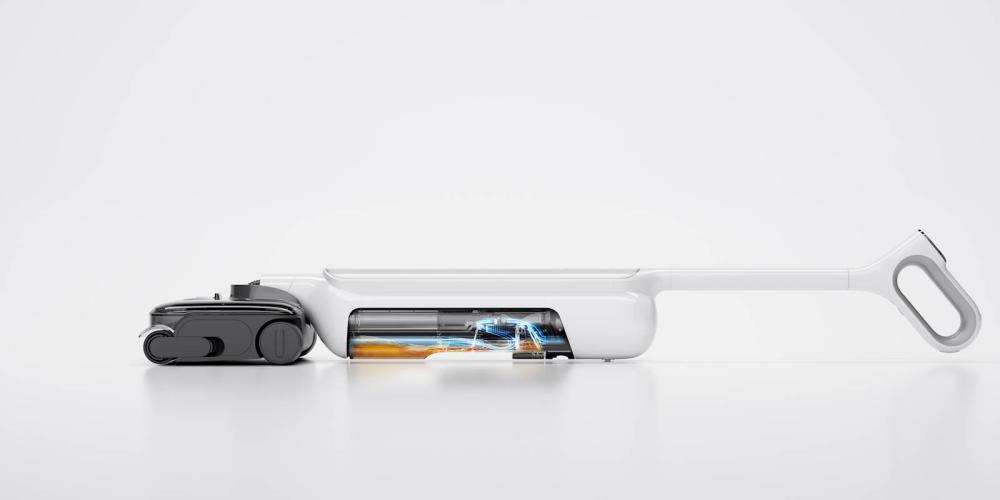 Xiaomi W30 Pro Wet & Dry Vacuum je zmogljiv brezžični sesalnik, ki združuje sesanje, mopanje in samodejno čiščenje krtače v eni napravi. Glavni motor zagotavlja sesalno moč do 18.000 Pa, kar povečuje učinkovitost pri zbiranju prahu, las in trdovratnih madežev. Valjasta krtača se vrti s hitrostjo 450 obratov na minuto, kar omogoča temeljito globinsko čiščenje različnih vrst tal. Posebnost naprave je 4-stopenjski anti-tangle sistem, ki zmanjša možnosti zapletanja dlak – s kombinacijo fiksnih ostrih zob in kovinskega strgala ter širokega usmerjevalnega sesalnega kanala. Pri mokrem čiščenju sesalnik uporablja realno-časni sistem čiste vode, ki omogoča istočasno sesanje umazanije in brisanje tal. Hkrati je vgrajen pameten sistem, ki minimizira madeže vode – naprava ima 5 slojev mehanizmov, ki preprečujejo prekomerno mokrote in zagotavljajo, da se tla hitreje sušijo (sušenje je po podatkih proizvajalca do 9 % hitrejše). Za vzdrževanje krtače je na voljo postaja, ki omogoča samodejno čiščenje: krtača se najprej namoči v vročo vodo, nato se pere s premikanjem naprej-nazaj, nato pa se suši s zrakom na 80 °C, da se odstrani vonj. Po tem lahko postaja “zažari” krtačo pri 100 °C, da obnovi njeno puhavost. Zahvaljujoč 180-stopinjskemu nagibu glave sesalnika lahko učinkovito čistite tudi pod nizkim pohištvom — sesalnik se nagne skoraj do tal in doseže zelo ozke ter nizke predele. Baterija je 4.000 mAh, kar po podatkih proizvajalca zadostuje za približno 40 minut delovanja v standardnem načinu. Rezervoarja za čisto in umazano vodo sta ločena (1.000 ml / 700 ml), kar pomeni, da lahko po domačih tleh naredite več prehodov, ne da bi pogosto praznili. Telo sesalnika je ergonomsko zasnovano: rezervoar za čisto vodo je postavljen nizko, kar znižuje težišče, olajša rokovanje in poveča pritisk krtače ob tleh, kar pomaga pri odstranjevanju trdovratnih madežev.