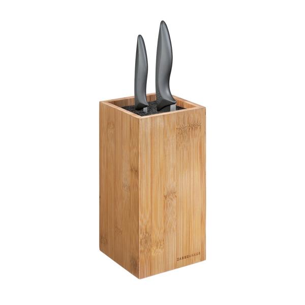 Leseno stojalo Zassenhaus za lično pospravljene nože in urejen izgled kuhinjskega pulta. V notranjosti stojala je prilagodljivi vložek iz ščetin, ki omogoča varno odlaganje vseh oblik nožev z dolžino rezila do 20 cm. Ščetinasti vložek enostavno operete ali postavite v pomivalni stroj.